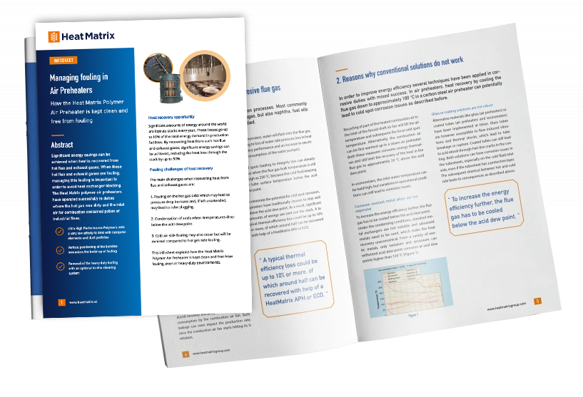 Infosheet on the prevention and control of fouling in polymer air preheaters.
